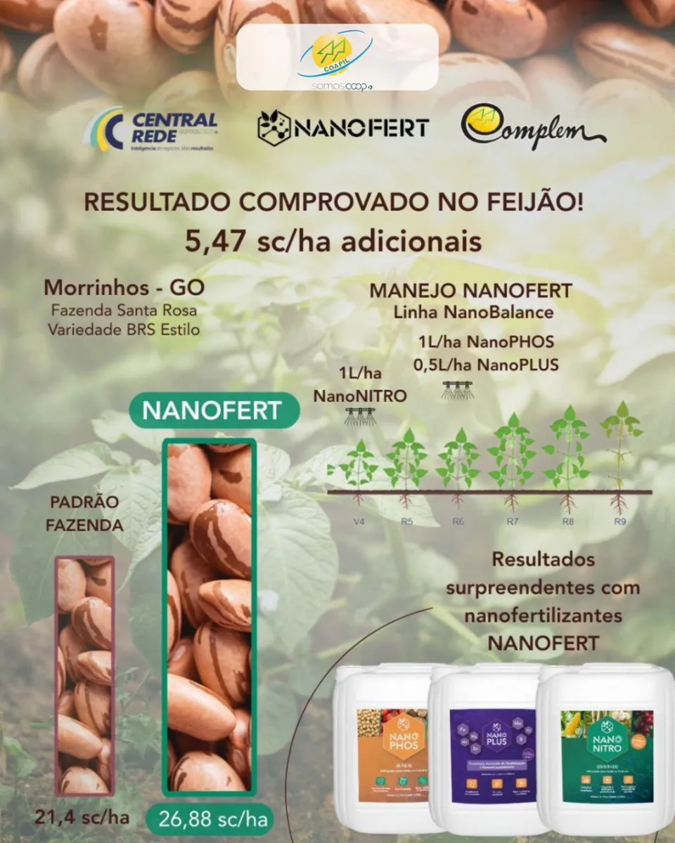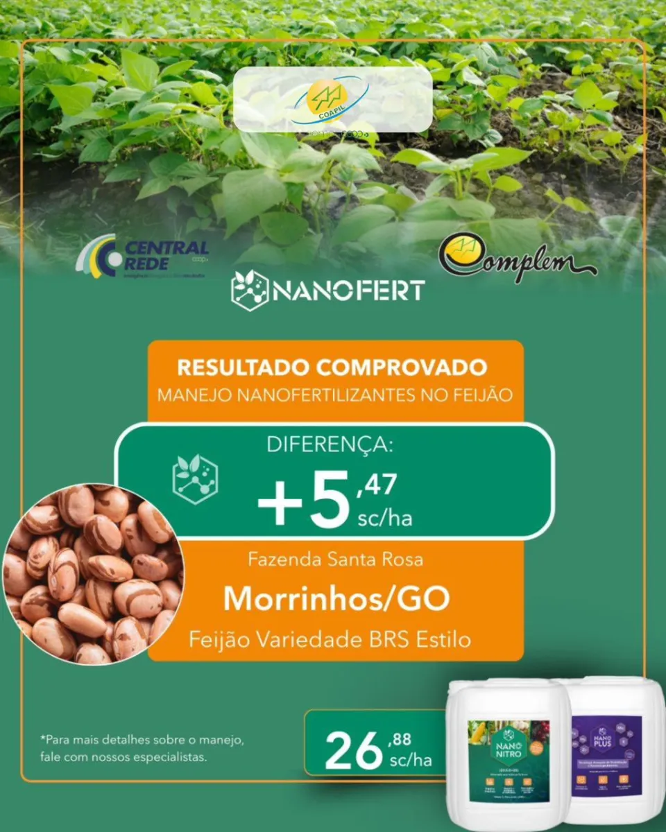 O trabalho é fruto de uma parceria entre produtores, Nanofert, Coapil, Complem e Central Rede, que vem ampliando os testes também para as culturas de feijão e abóbora cabotiá, onde já se observam crescimentos exponenciais de produtividade e vigor das plantas.
